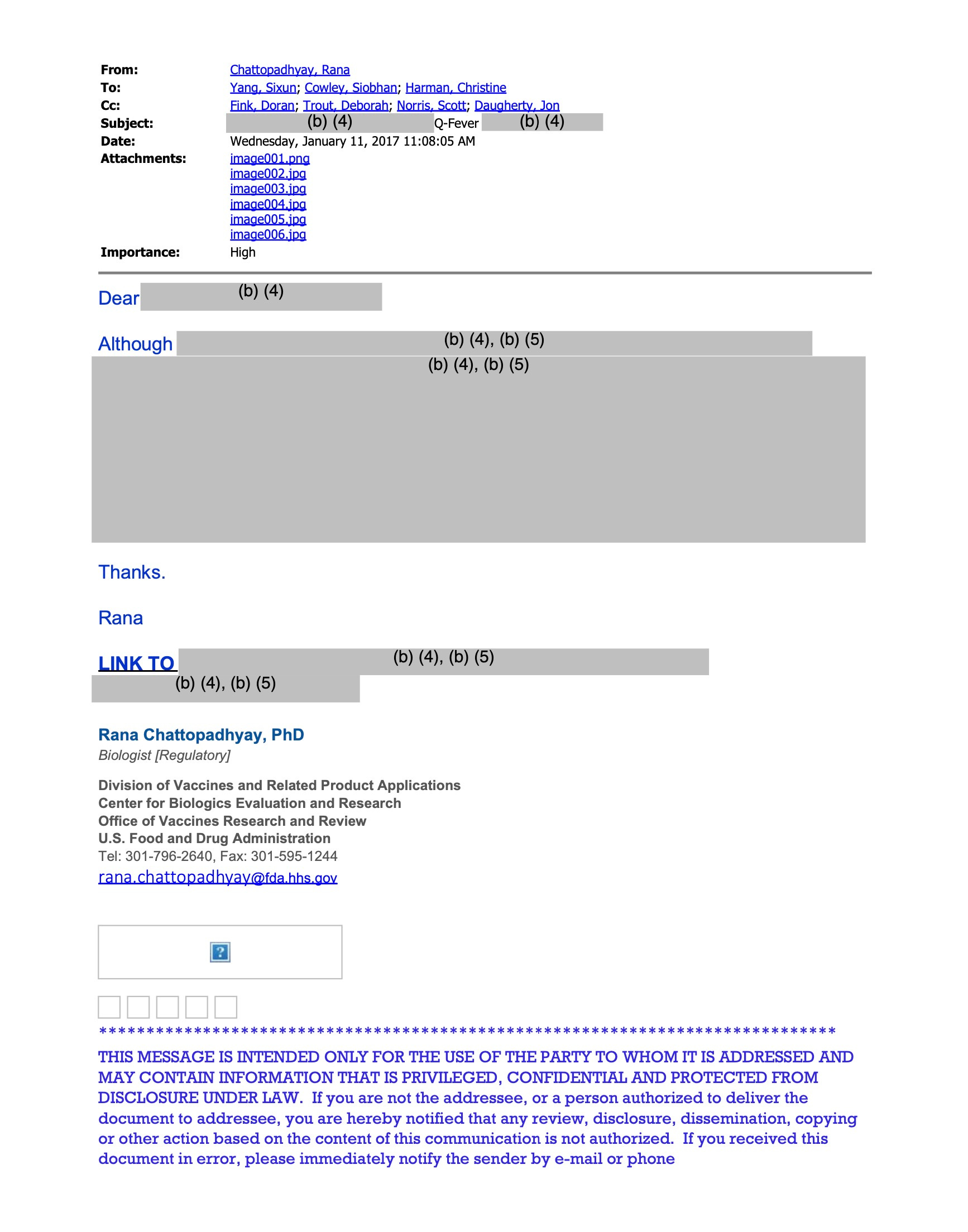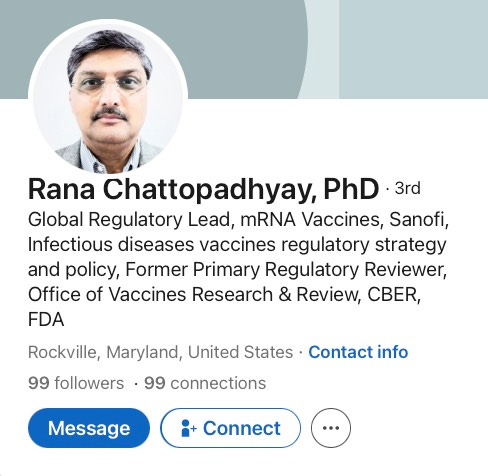 Rana Chattopadhyay, formerly with the FDA division of Vaccines and Related Product Applications, now works for Sanofi.