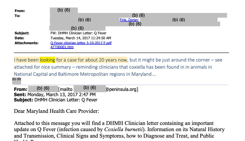 Someone inside the FDA’s communications had been looking for a case of Coxiella for about 20 years. Perhaps the finally found it…