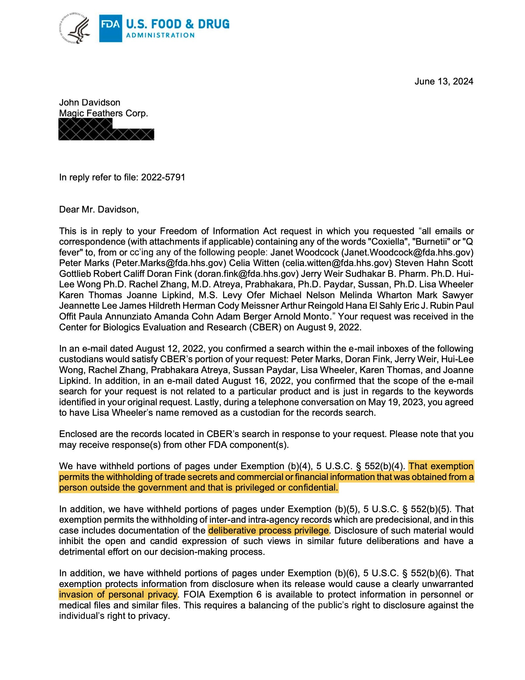 23 Months Later...another FDA redacted document release involving a biological weapon reported in Maryland.