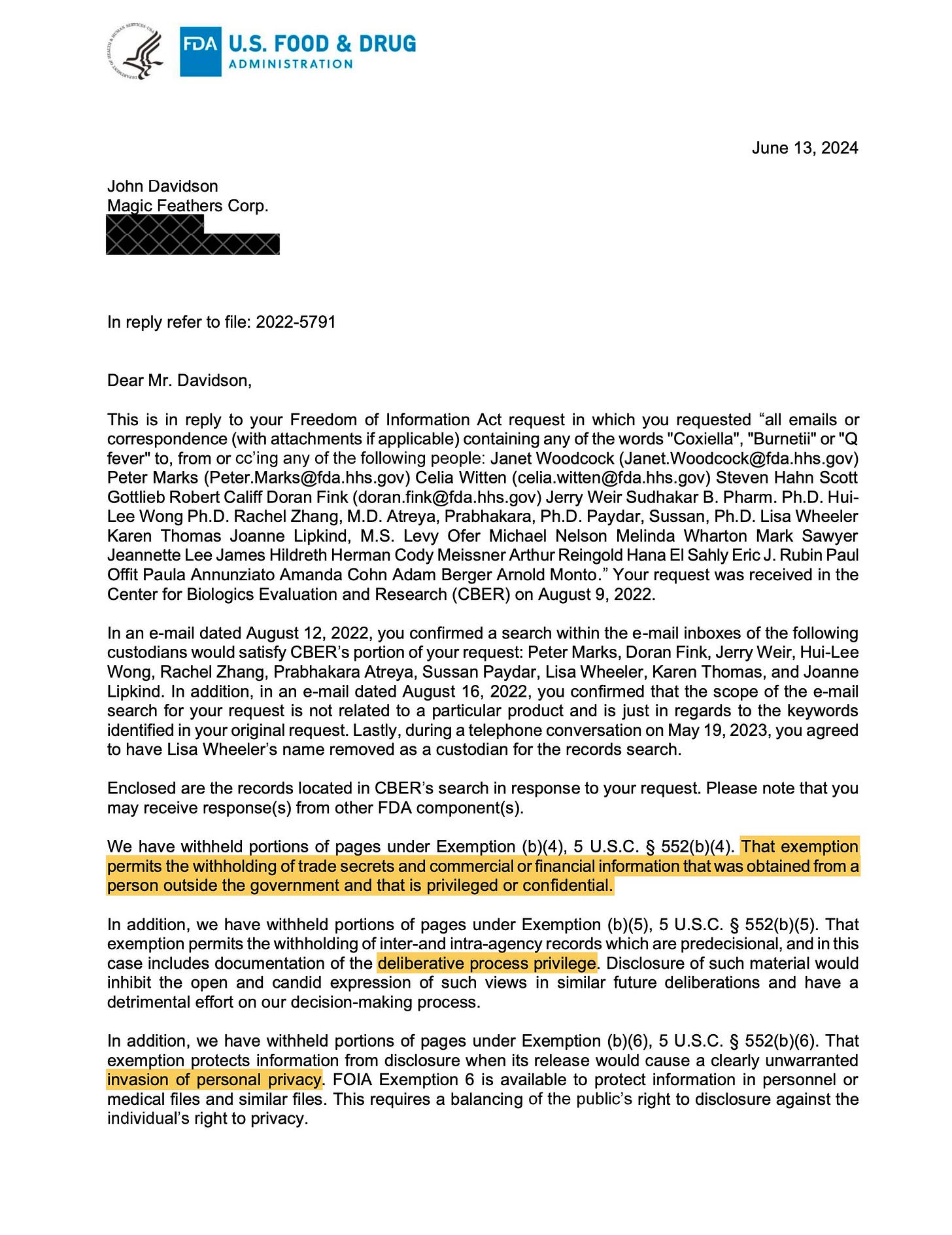 Why is the FDA so adamant that questions and FOIA's regarding Coxiella Burnetii and the disease it causes (Q fever) be redacted and denied at all costs?