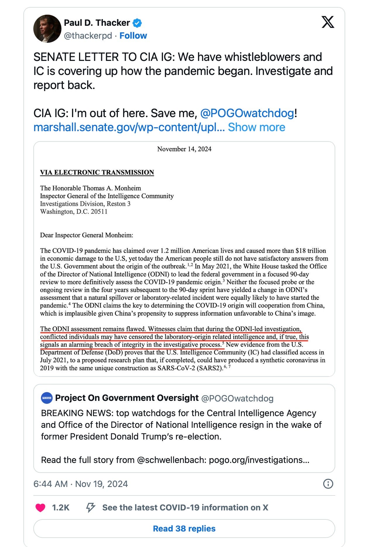 Meanwhile, Zero Hedge noted, "the intelligence community continues to cover up the origins of the pandemic, which is why widespread distribution of this work is that much more important."