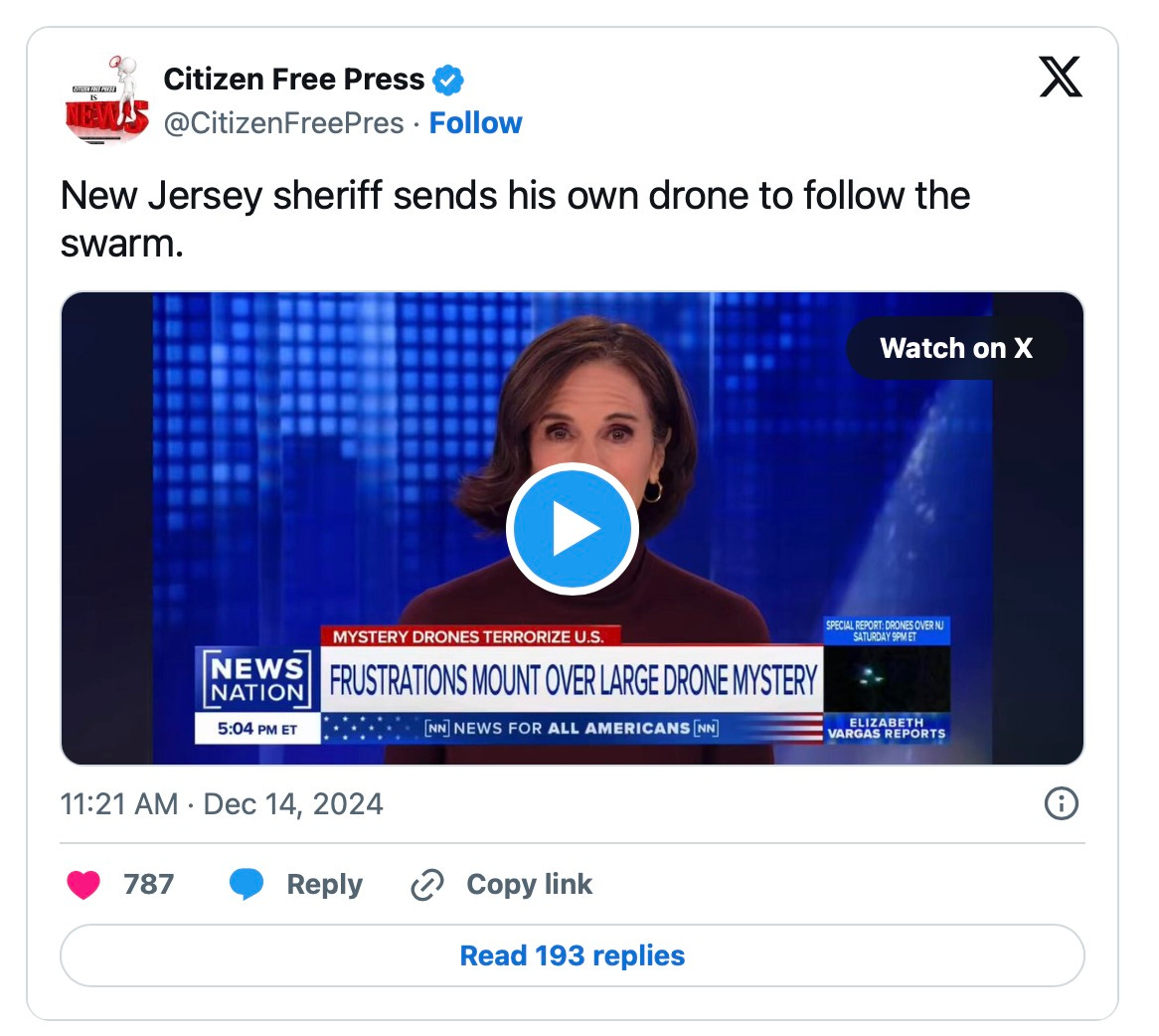 "The government is in control of the drones and refuses to tell the American people what is going on. It really is that bad. I'm gonna call it total bulls*** that no one knows what these are. And I think it's a slap in the face to the American people to say they don't know what this is."