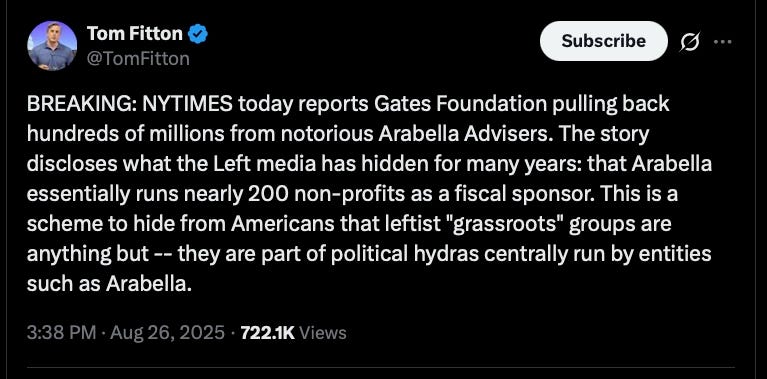On the same day, it was announced that the Gates Foundation was distancing itself from Arabella Advisors, a political juggernaut that channels significant dark money funds into left-wing causes.