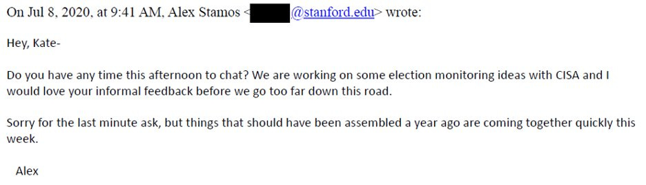 According to one EIP member, the EIP was created “at the request of CISA.” The head of the EIP also said that EIP was created after “working on some monitoring ideas with CISA.”