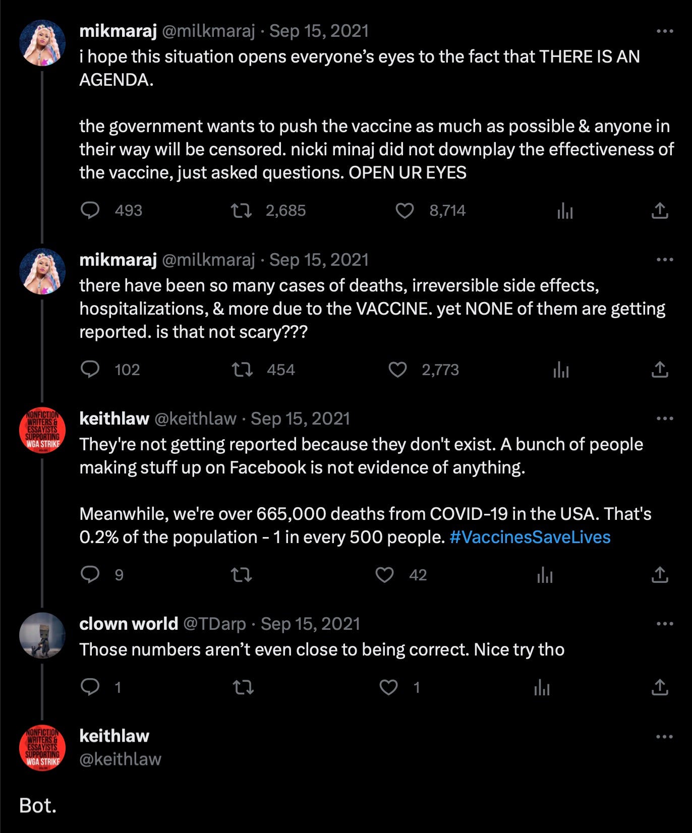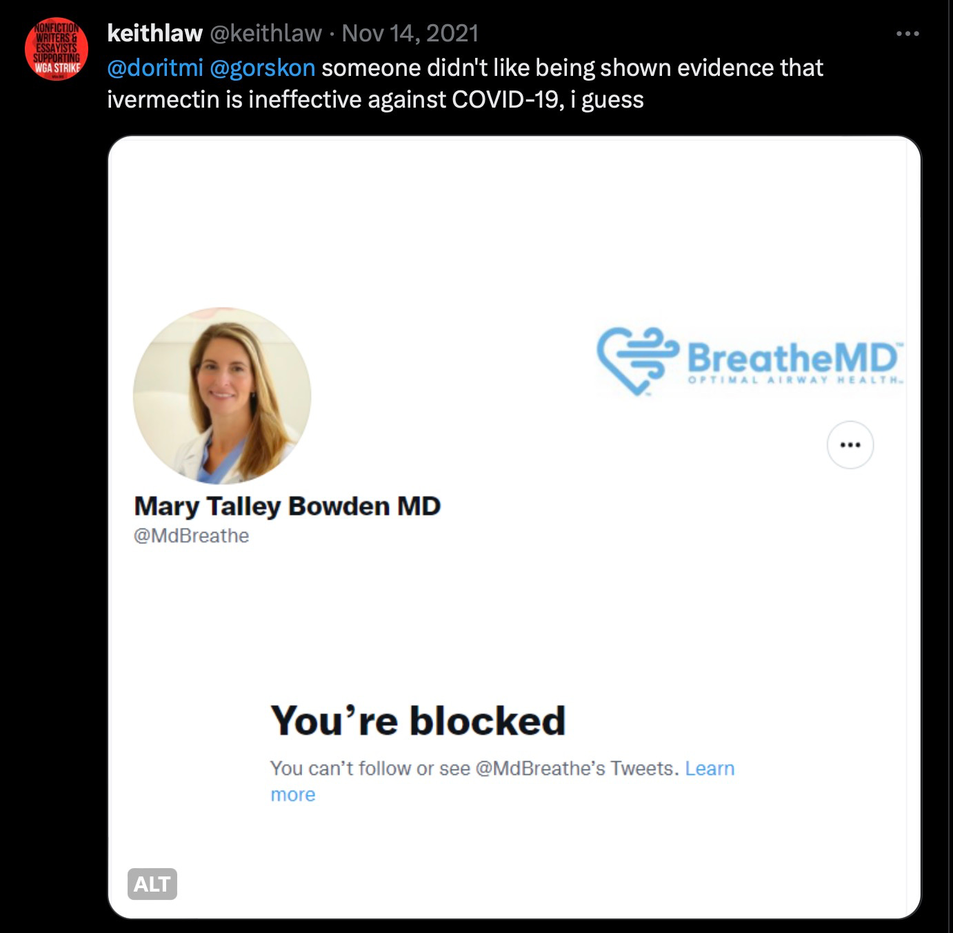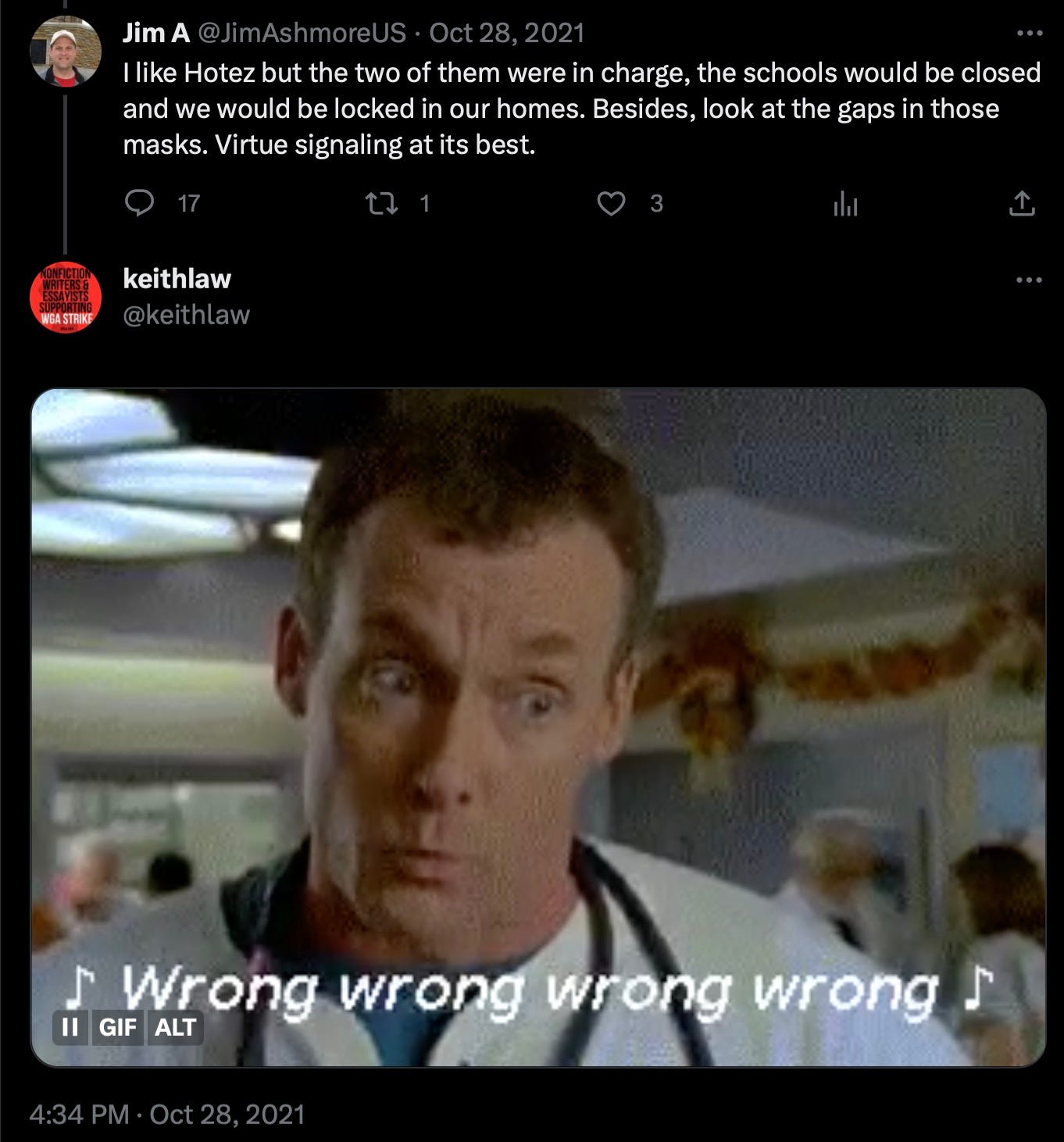 In this disastrous thread in Feb of 2021, Keith targeted Rishanne Golden for posts warning about vaccines.