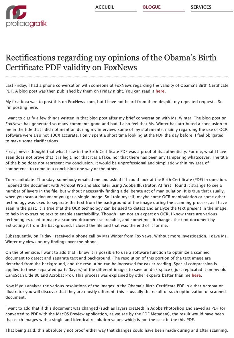 He explained layers as optimization artifacts (e.g., from software like CanonScan LiDE 80 or Acrobat Pro), not fraud, and debunked affiliation rumors (e.g., no Obama campaign work).