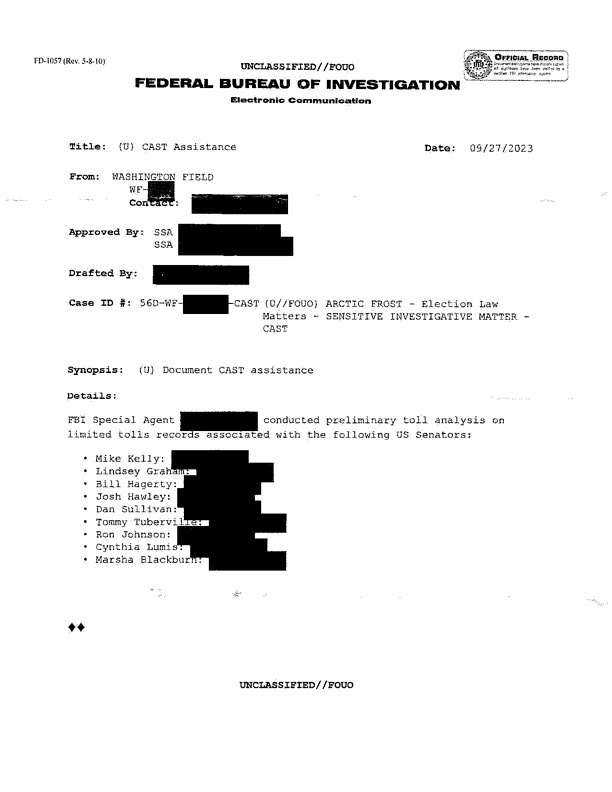 The list of targeted senators includes Johnson, Lindsey Graham, Josh Hawley, Marsha Blackburn, Dan Sullivan, Tommy Tuberville, and Cynthia Lummis—all Republicans. Johnson, who chaired the Homeland Security Committee at the time, speculated on motives: “I’ve been a thorn in the FBI’s side for quite some time.” He dismissed clear unifying factors beyond party affiliation and support for Trump, calling the selections “a really odd list.”