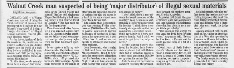 Seth was apparently flush with cash. Assistant US Attorney Elise Becker was concerned that Seth had access to an ‘unlimited amount of money’ and was a flight risk. According to an article at the time, Seth’s brother Josh Bekenstein traveled from Massachusetts to Oakland and posted a $500,000 bond, stating “I don’t think there is any evidence he would move out of the country”.