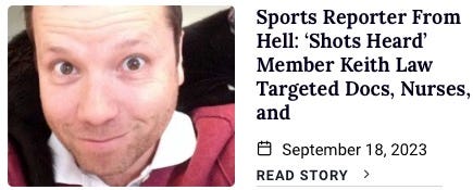 Keith Law was recently featured as the 'Sportswriter from Hell' in another expose on Broken Truth for his role in targeting citizens.