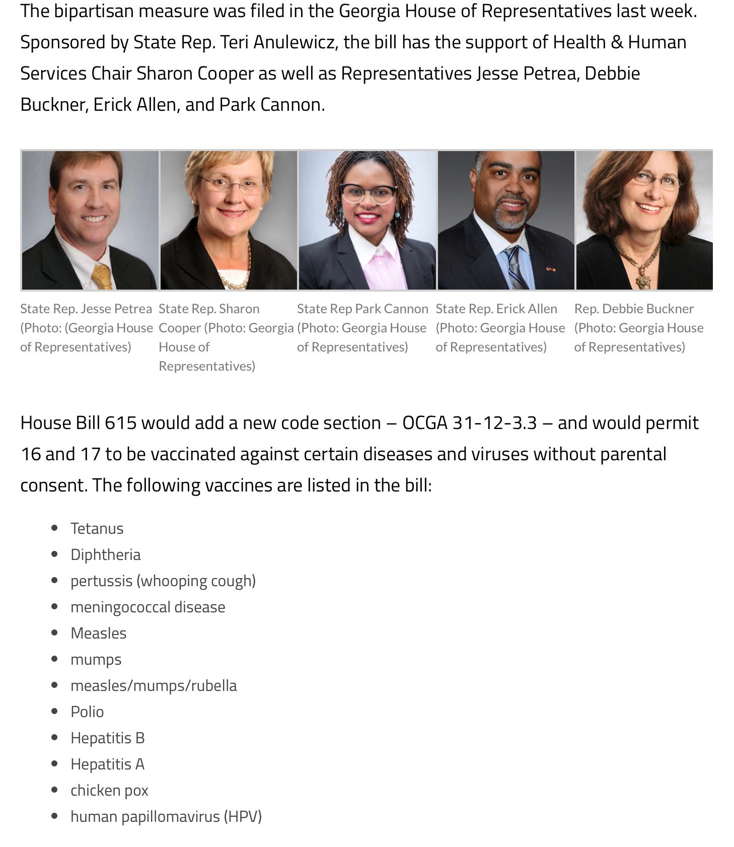 "I was very concerned to see this legislation that would completely take vaccines out of our schools," Rep. Anulewicz said. Georgia lawmaker proposes bill to ban COVID vaccine requirement in schools, 11 Alive