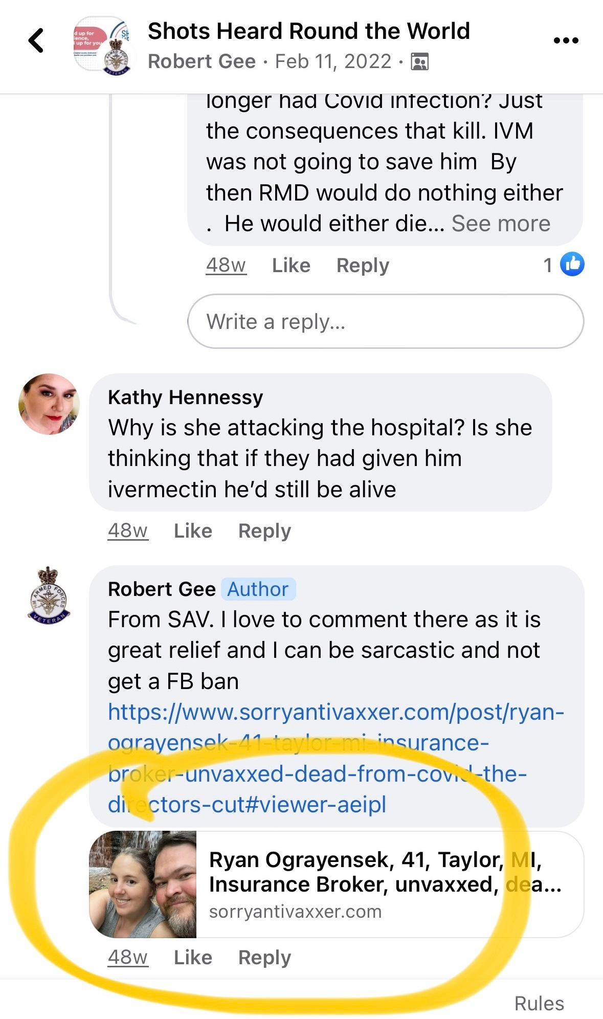 Shots Heard members have referenced another website called 'Sorry Antivaxxer', a site that mocks Republicans and Donald Trump as well as glorifies and attributes deaths from COVID to anti-vaccination status.