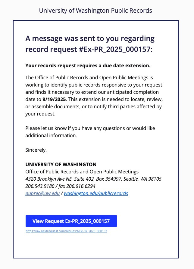Because Chu has links to Gates Foundation and we have numerous issues like Gates Foundation researching me when I submitted questions to the organization, on Feb 14, 2025 I submitted a public records request to the University of Washington.