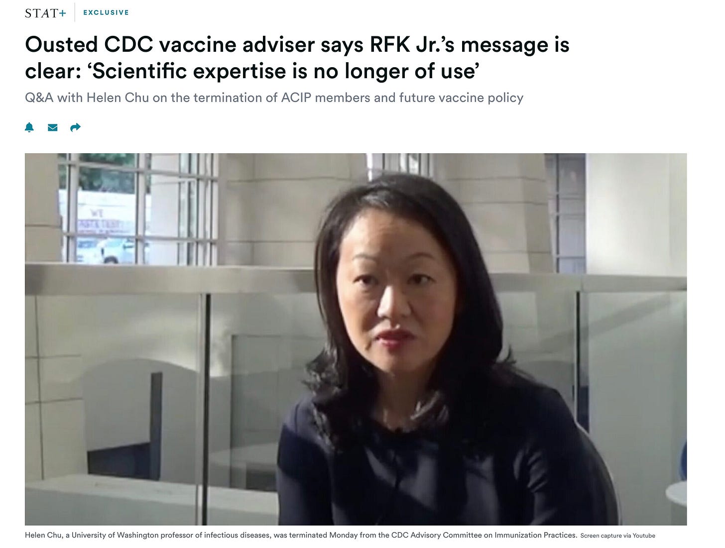 When the Trump admin brought Secretary Robert F. Kennedy on board, Chu and others advising the CDC were removed from any further influence in the agency. Chu, who is accused by Dr. Paul Marik and others of committing ‘scientific misconduct’ in her remdesivir study declared in Stat+ that ‘Scientific expertise is no longer of use’.