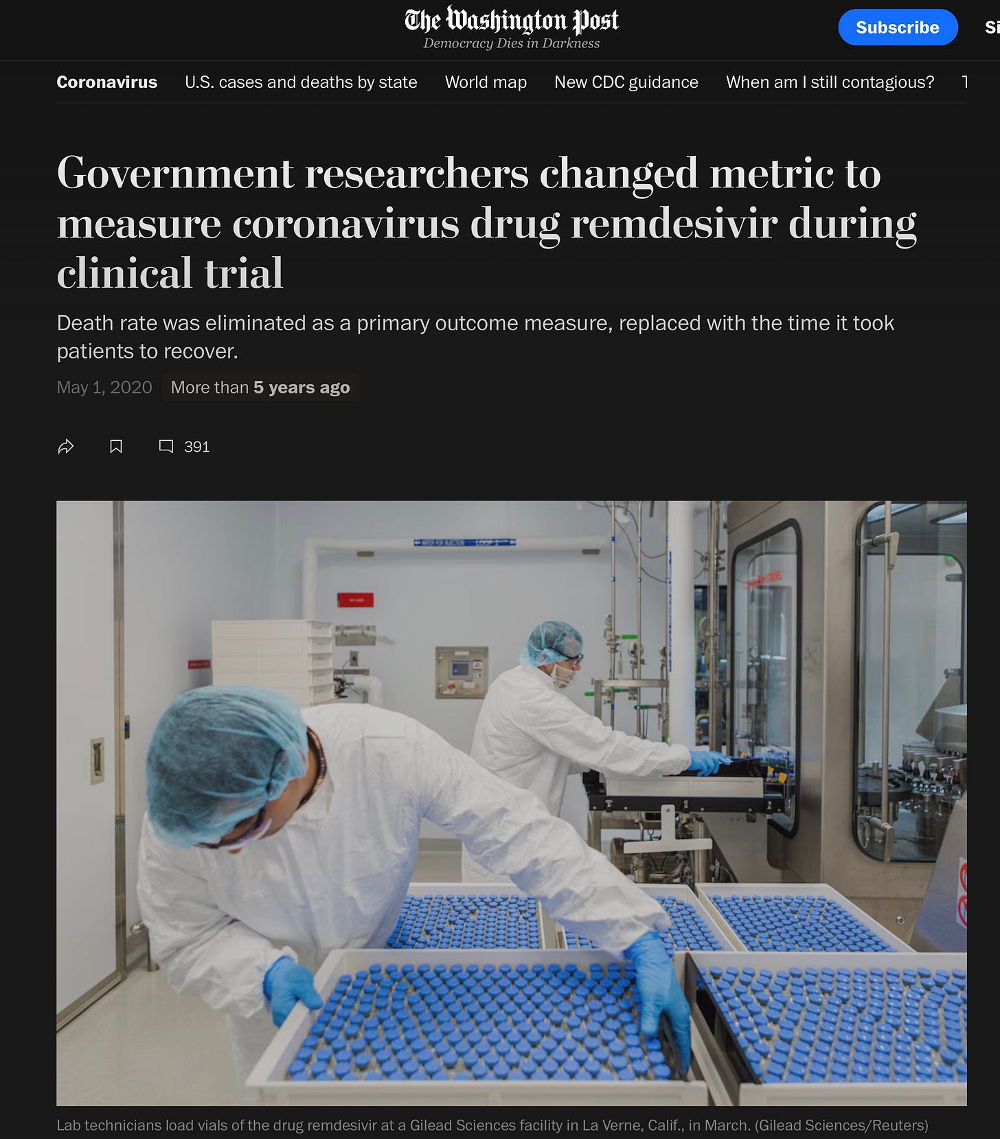 Dr. Chu was then enlisted to create a study for Remdesivir. When the study was going to show a negative result for Remdesivir as a treatment, Chu et al changed the endpoint of the study to ‘time to recovery’. Dr. Chu has received funding from NIH, CDC, DARPA, and the Gates Foundation.
